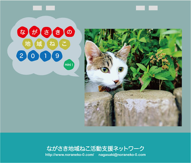 今年で9年目となるながさき地域猫活動支援ネットワーク(旧 長崎県地域猫活動連絡協議会)のチャリティーカレンダー「ながさきの地域ねこ」2019年版の販売を(大変遅ればせながら)開始いたしました。昨年の2018年版同様、B5サイズ(見開きB4サイズ)の壁掛けタイプ1,000円(税込・送料込)と、B6サイズの卓上タイプ900円(税込・送料込)の2種類となります。ネットショップより購入できます。